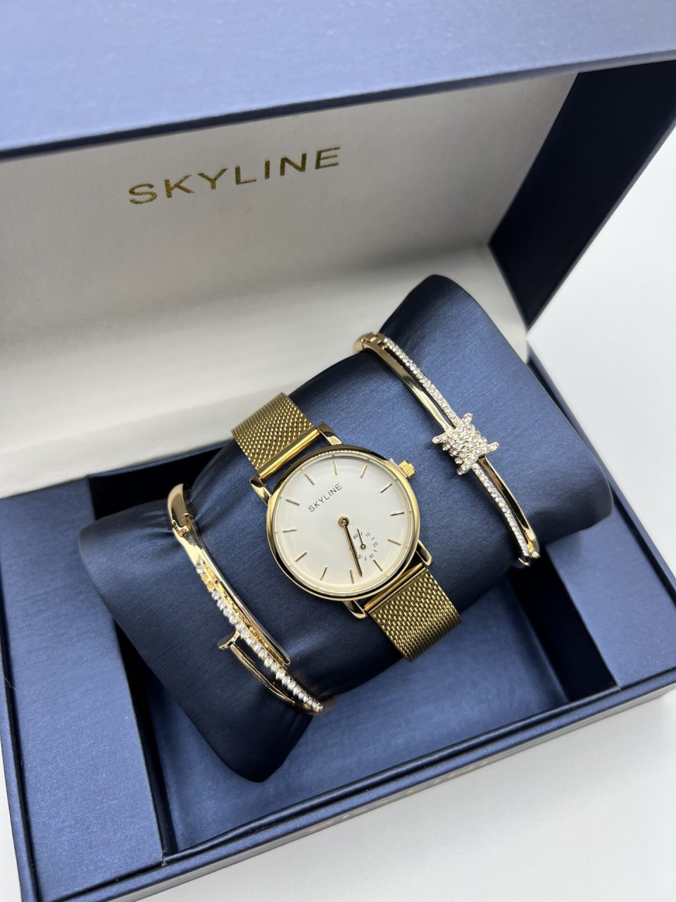 Reloj Skyline en acero inoxidable resistente al agua 3atm+2 brazaletes+ caja. Movimiento: cuarzo japonés. Correa: acero inoxidable. Impermeabilidad: WR 3ATM. Función: hora.