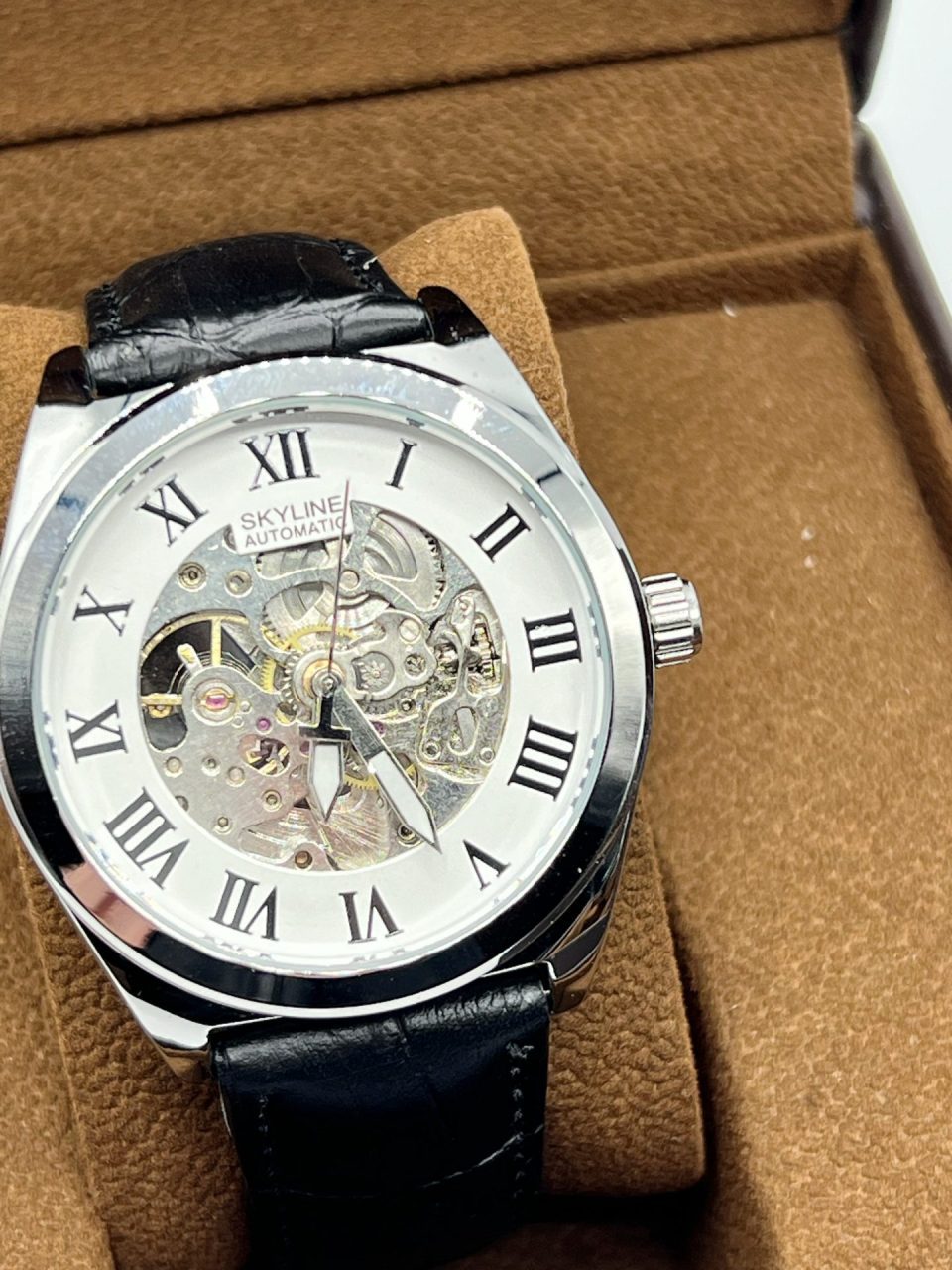 Reloj automático Skyline, con caja en acero y correa de piel. Dial con maquinaria a la vista. Garantía de 2 años.