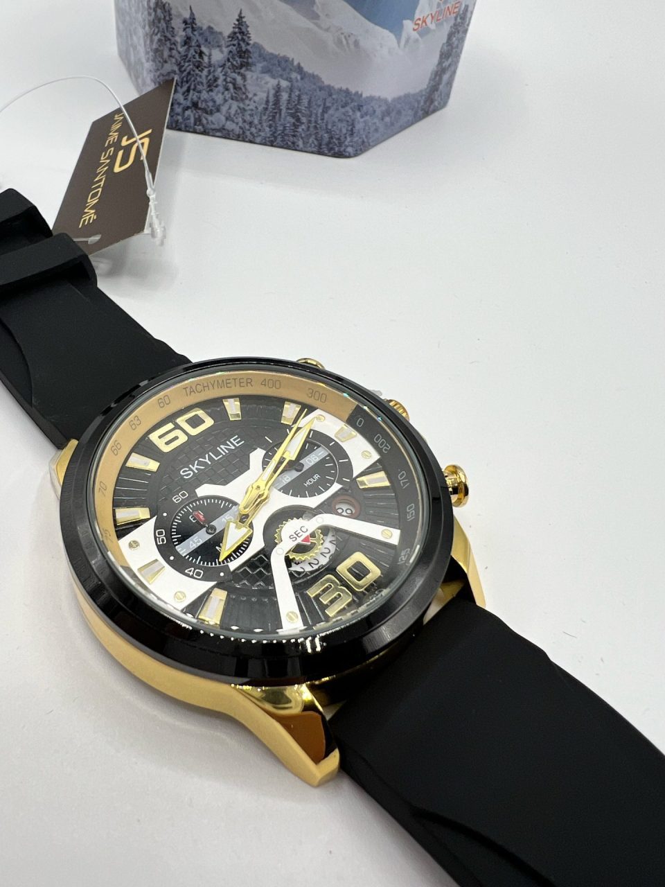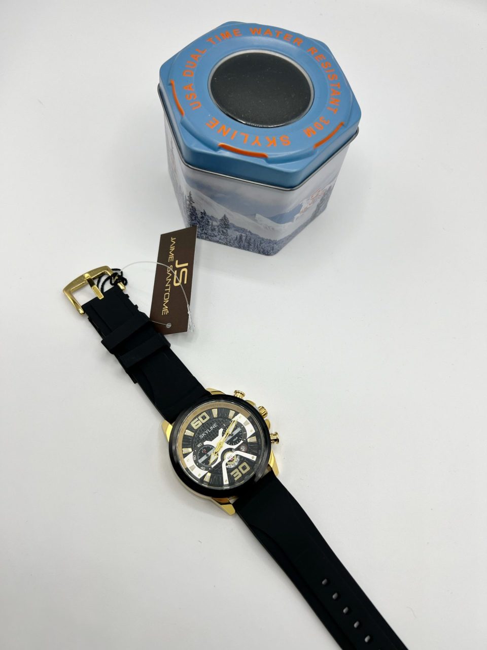 Reloj cronógrafo hombre Skyline. Movimiento cuarzo japonés. Correa de caucho, resistente al agua. Función: hora, calendario y cronógrafo.