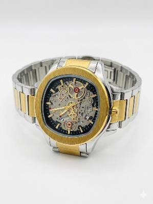 Elevate su estilo con el Reloj Skyline Skeleton, una pieza que combina la ingeniería mecánica a la vista con un diseño bicolor de lujo. Fabricado en acero inoxidable de alta calidad, cuenta con bisel dorado cepillado y ventana de calendario. Un accesorio robusto, sofisticado y perfecto para el uso diario.