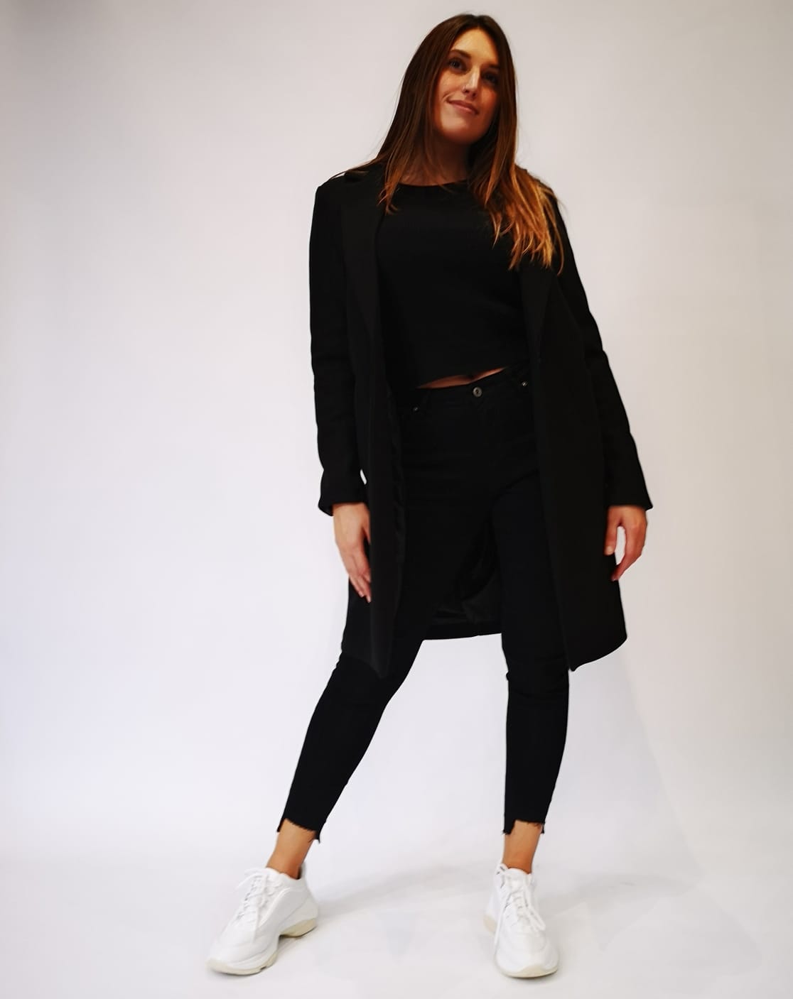 Abrigo de paño con cuello solapa de muesca y manga larga. Dos bolsillos frontales de doble vivo. Cierre frontal con botón de pasta. Forro interior en mismo color. 100% poliéster. Fabricado en Italia.
