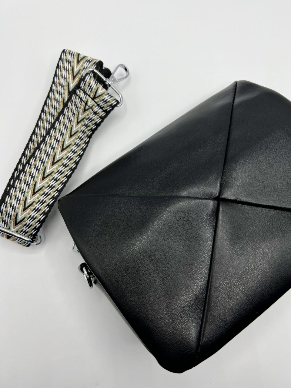Bolso bandolera con solapa en todo el frontal. Correa ancha de colores. Un bolsillo interior de cremallera. Cierre de cremallera tapada por solapa frontal con botón de imán. Exterior: 100% PU e Interior: 100% Poliéster. Fornituras en metal.