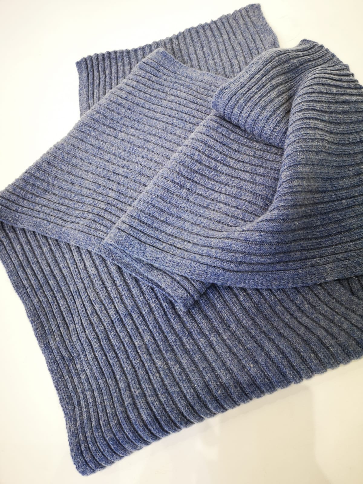 Bufanda hombre de 179 cm. de largo y 28 cm. de ancho. Punto acanalado de un solo color.