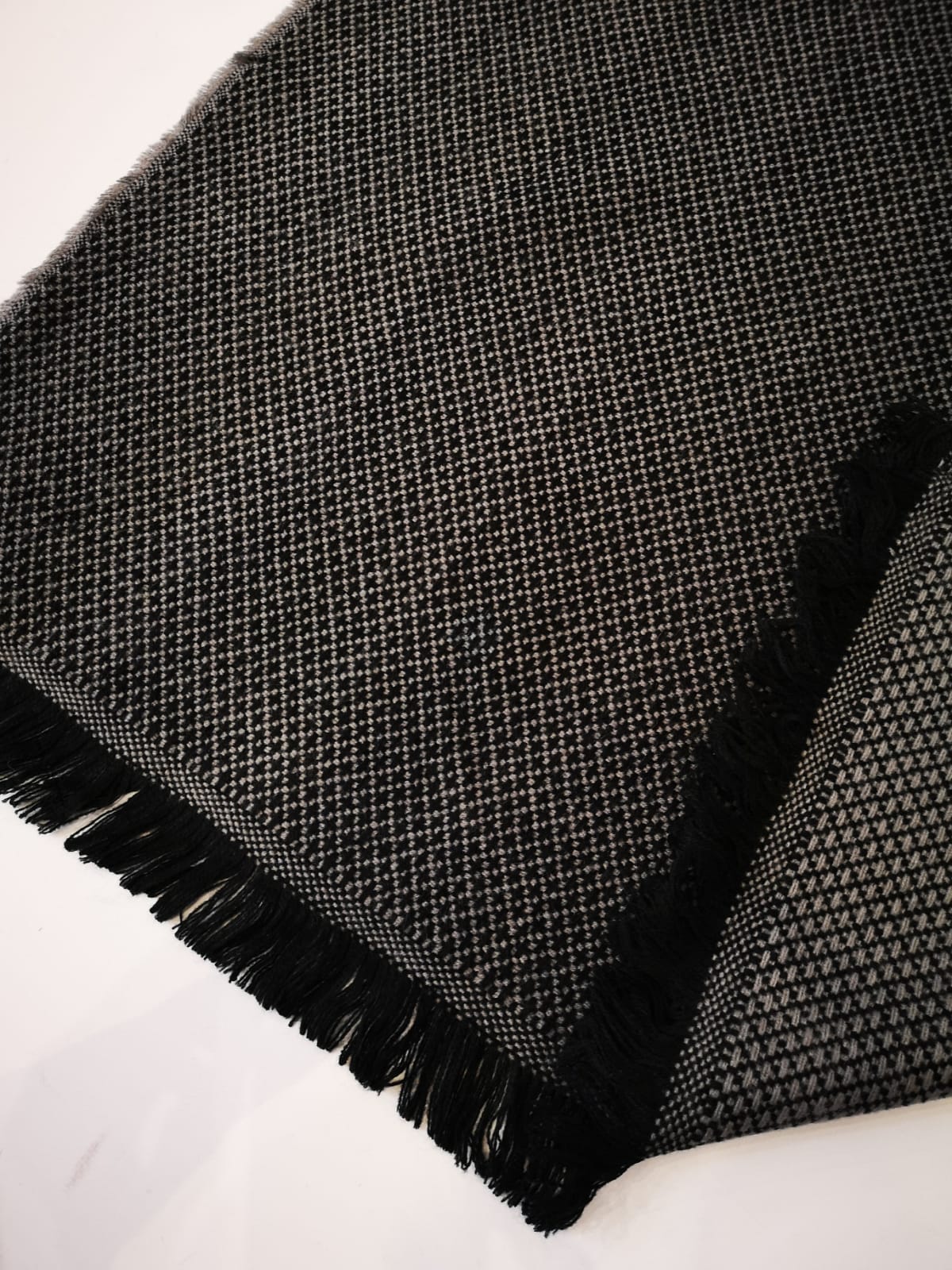 Bufanda hombre de 195 cm. de largo y 73 cm. de ancho. Pequeños flecos en los laterales y un poco más grandes en las puntas.