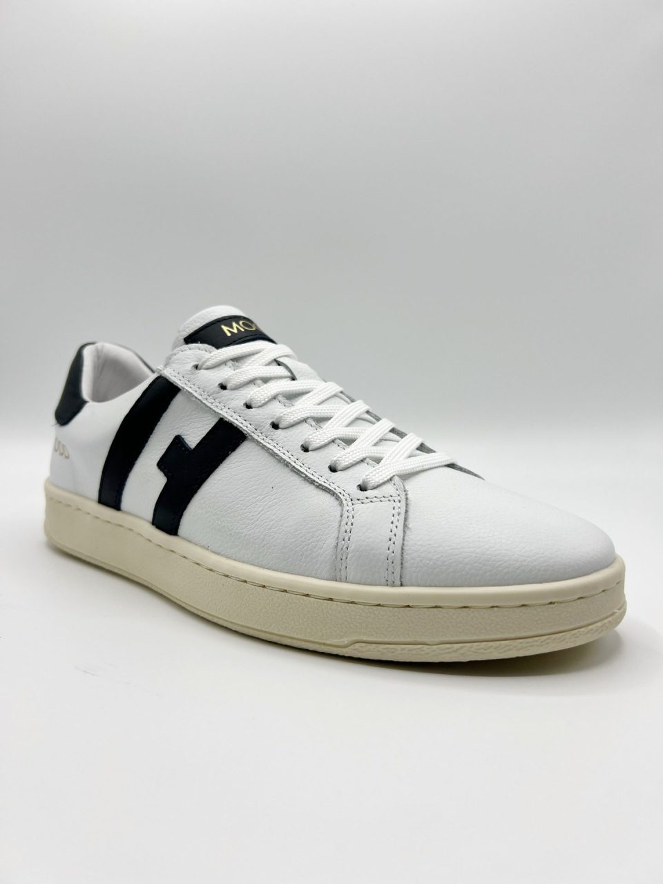 Zapatillas de hombre con un perfil dinámico y deportivo, tanto para casual como para vestir. Cierre con cordones planos con siete pasadas. Materiales utilizados: Empeine: cuero. Forro y plantilla: cuero y textil. Suela de goma. Fabricado en Portugal.