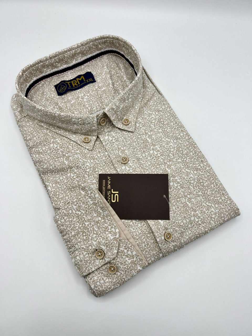 Camisa casual con estampado de flores en color beige. Manga larga con puño de dos botones. Cuello button down. 98% algodón y 2% lycra. Diseñado en España. Designed in Spain. Supreme qualitty.