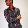 Camisa regular fit de cuello solapa con botones y manga larga. Cierre frontal de botonadura.