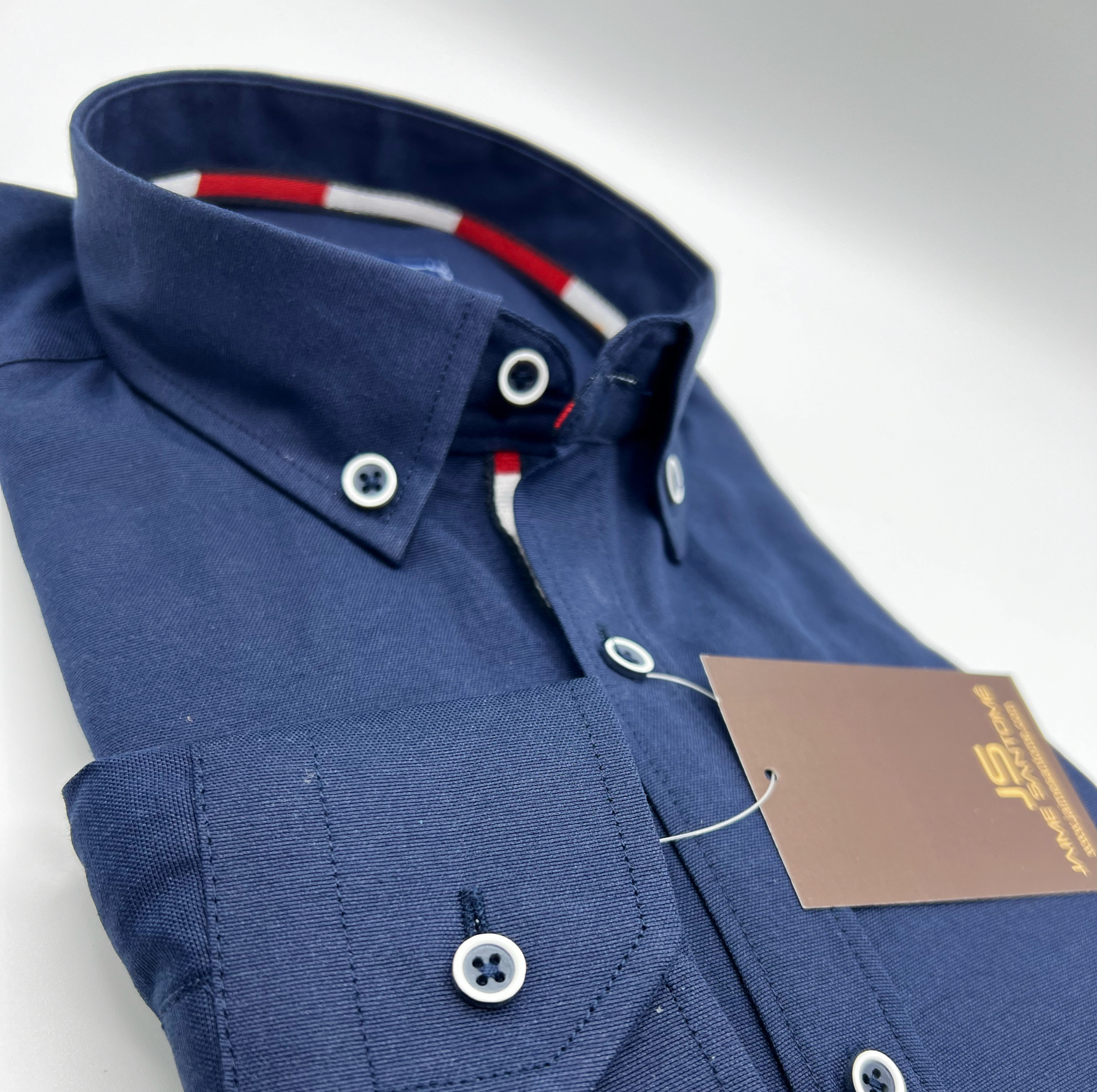 Camisa lisa de manga larga con puño de dos botones. Cuello button down. 80% algodón y 20% poliéster. Diseñado en España. Fabricado en Turquía. Supreme qualitty.