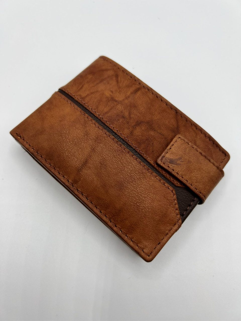 Cartera, billetera y tarjetero hombre en piel genuina. Diversos compartimentos para documentación, tarjetas, monedas y billetes. Medidas: 10,2 x 7,3 x 2 cm. Monedero y exterior con cierre de presión.