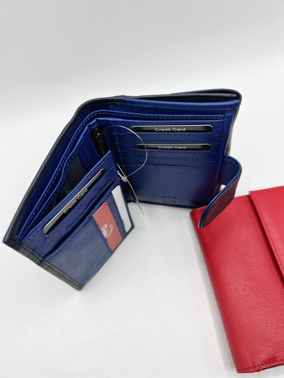 Cartera, billetera y tarjetero mujer en piel genuina. Diversos compartimentos para documentación, tarjetas, billetes y monedas. Medidas: 14 x 10 x 3 cm.