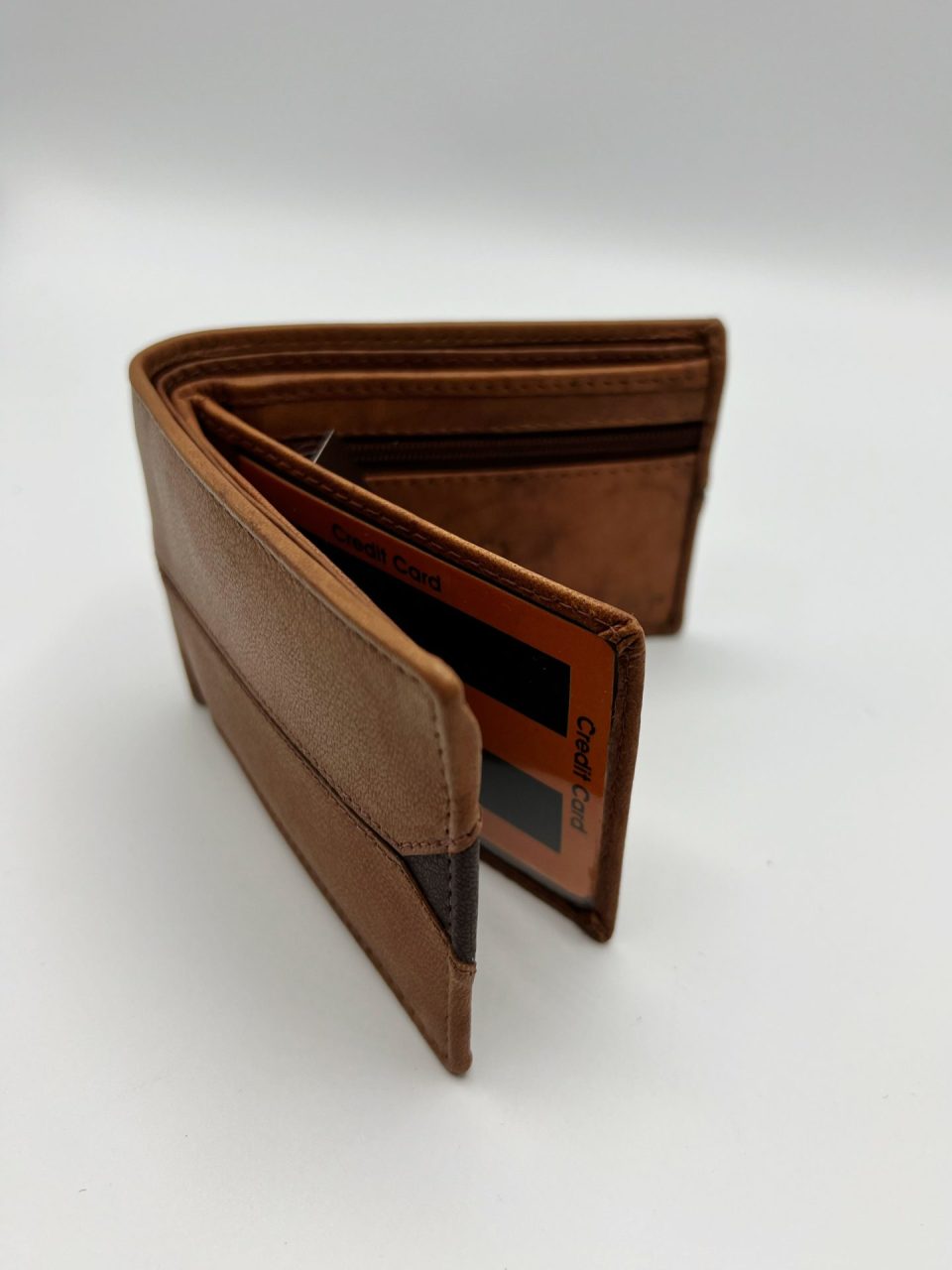 Cartera, billetera y tarjetero hombre en piel genuina. Diversos compartimentos para documentación, tarjetas, monedas y billetes. Medidas: 10 x 7,3 x 2,2 cm. Monedero con cremallera.