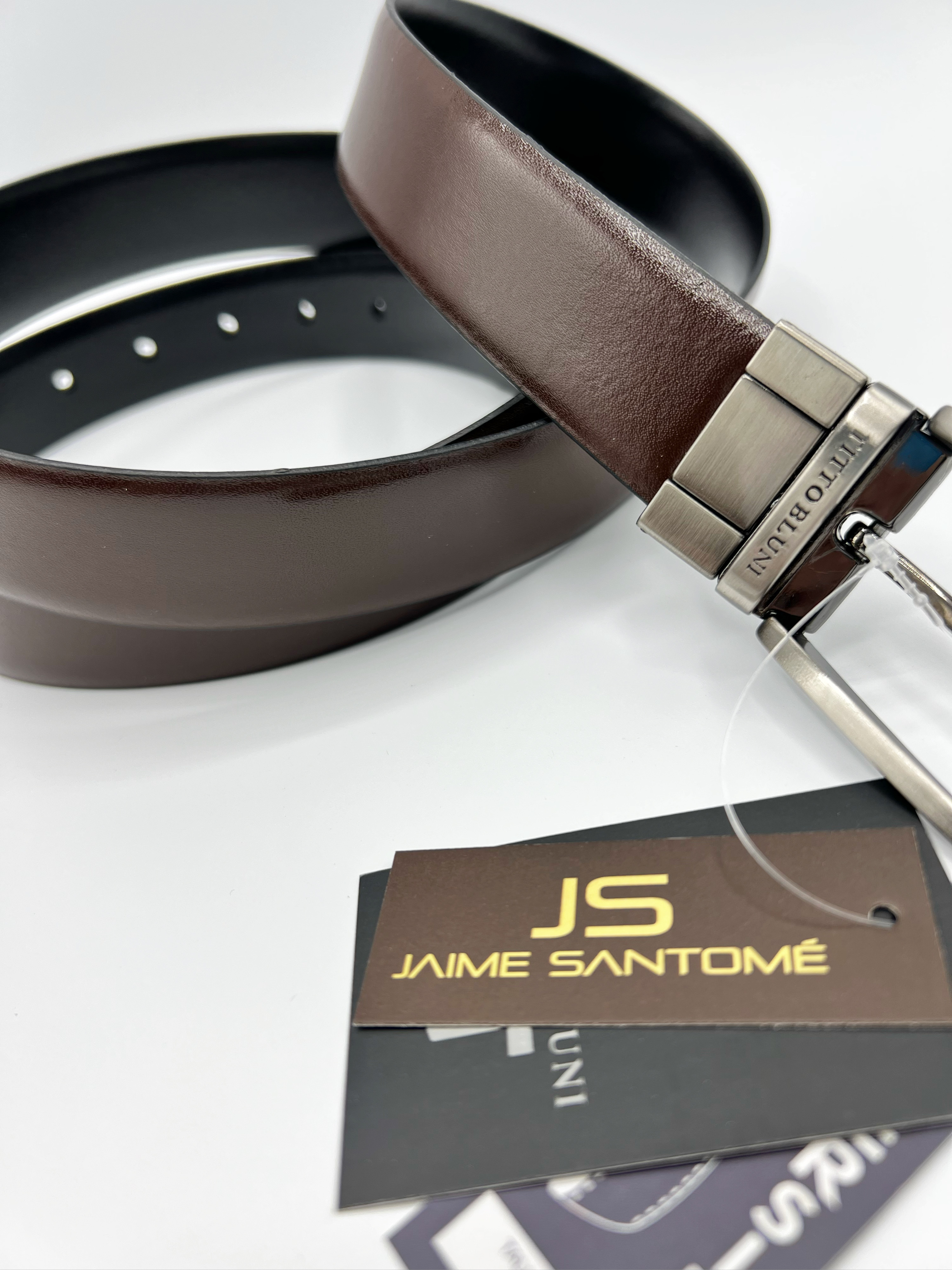 Cinturón reversible Titto Bluni piel BOX sin coser. 100% piel de vacuno y hebilla de zamak. Hecho en España. Ancho correa: 32 mm. Talla 115.
