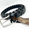 Cinturón sport de piel trenzada. Exterior piel de vacuno y Forro elástico. Hebilla de metal Zamack. Hecho en España. Ancho correa: 35 mm. Talla 110.