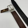 Cinturón Titto Bluni reversible en piel pelico/box , 100% vacuno, sin pespuntes. La cara de piel box es siempre en color cuero. La variación de color es en la cara de la piel pelico. Hebilla metal zamak, con logo grabado y enganche de punta. Hecho en España. Ancho correa: 35 mm. Talla 115. Se puede cortar para reducir talla.