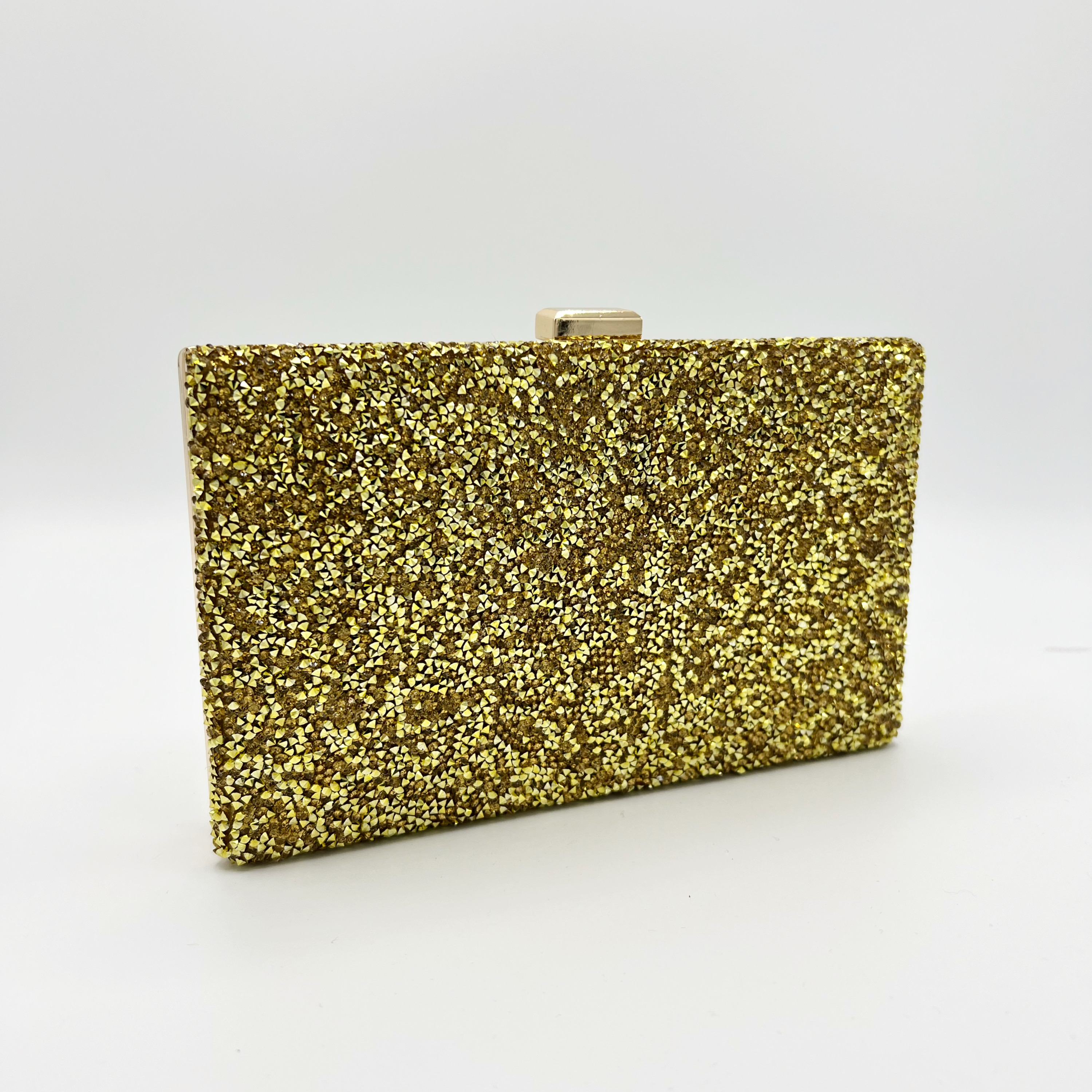 Clutch dorado con una cara lisa y otra de brilli brilli.