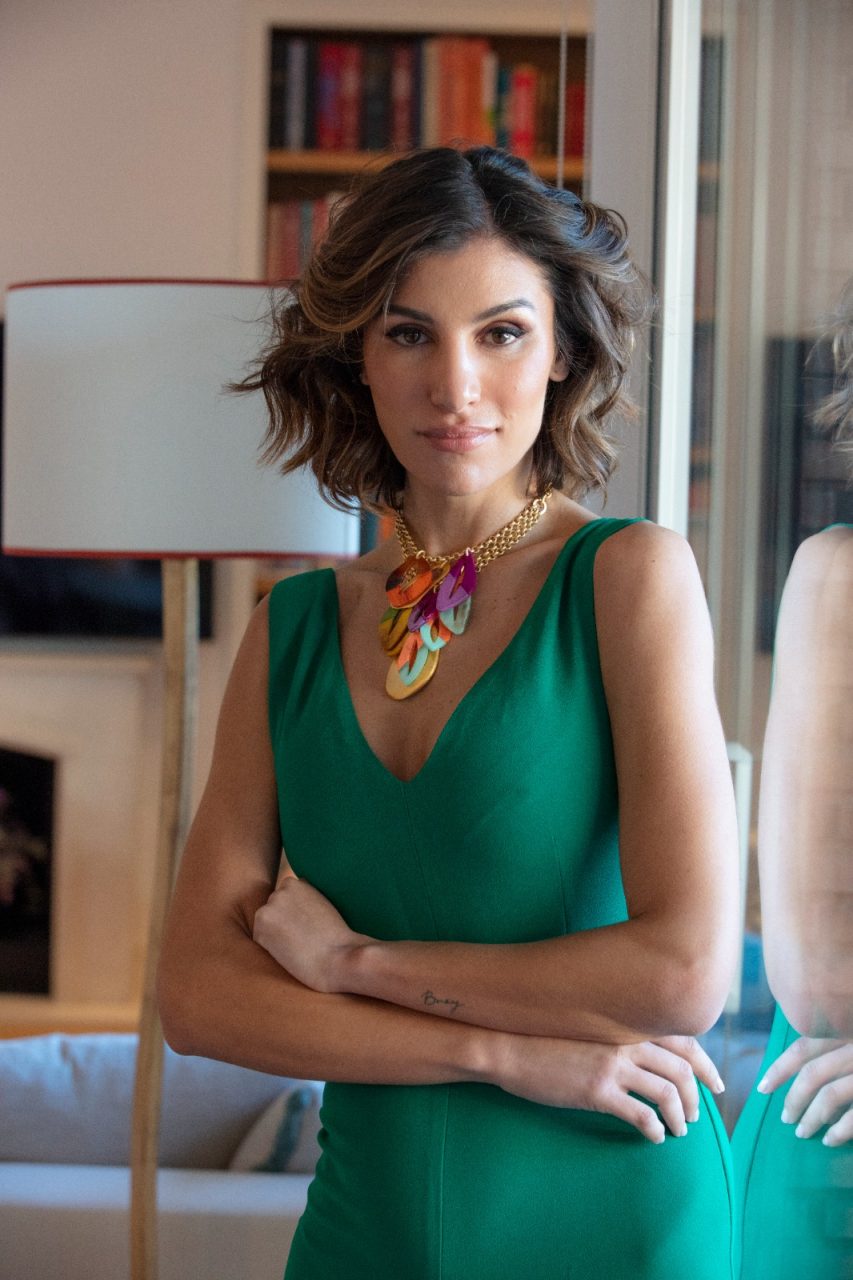 Collar gargantilla de cadena con gota central en baño de oro y aros en resina multicolor. Lleva cierre mosquetón que permite ajustar el collar a cualquier tamaño de cuello. Todo en baño de oro mate de 18 kilates.