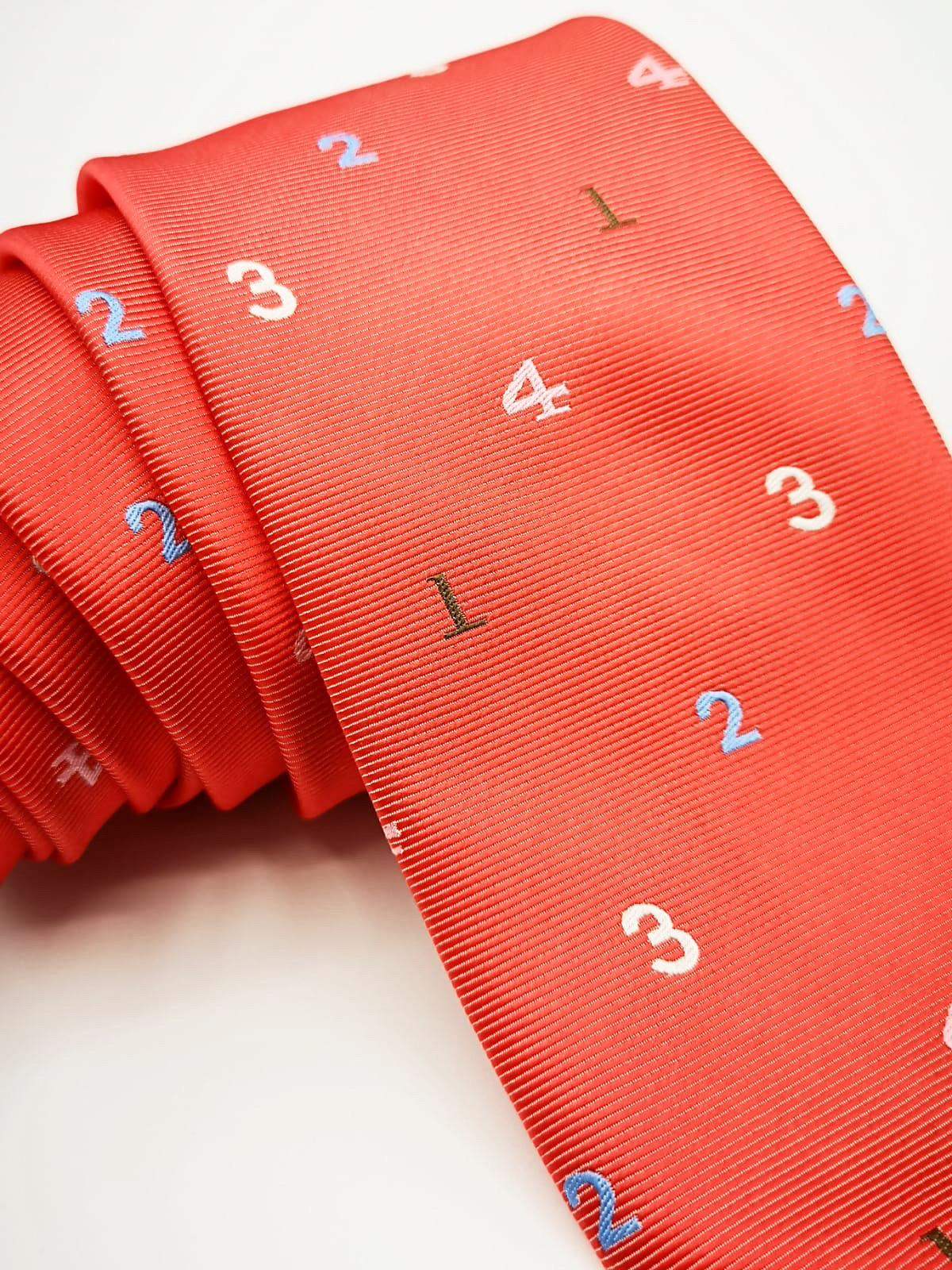 Corbata hecha a mano con estampado de números. 8 cm de ancho.