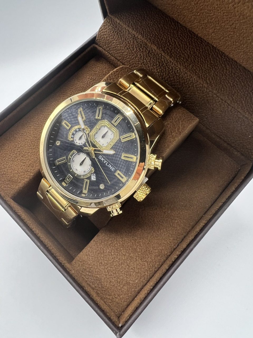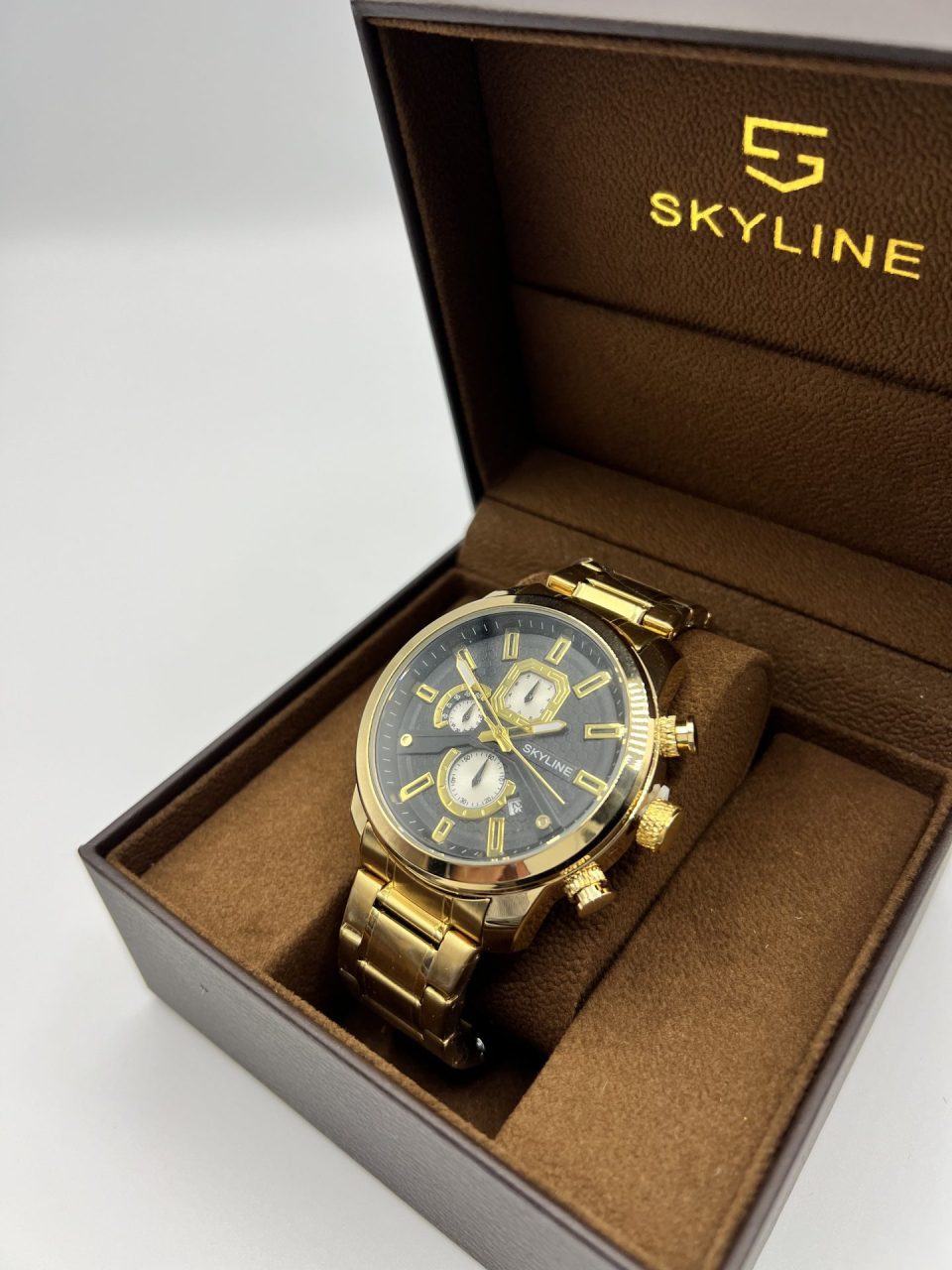 Reloj cronógrafo Skyline en acero. Movimiento cuarzo japonés. Correa en acero inoxidable. Función hora, calendario y cronógrafo.
