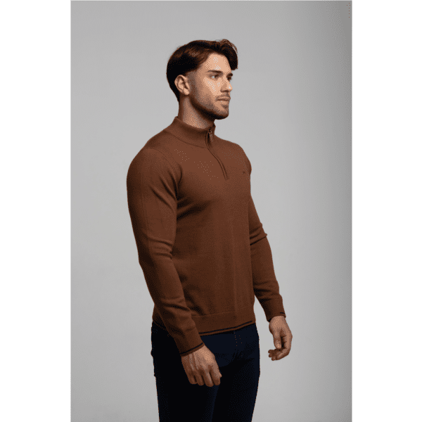 Jersey punto hombre, de manga larga y cuello caja elevado con media cremallera.