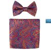 Pajarita de seda natural hecha a mano, con fondo naranja y estampado cachemir en tonos azulinos. Composición: 80% seda natural y 20% microfibra. Medidas: 10,5 x 6,5 cm. La cinta de cuello es cinta de falla, que desliza mejor.