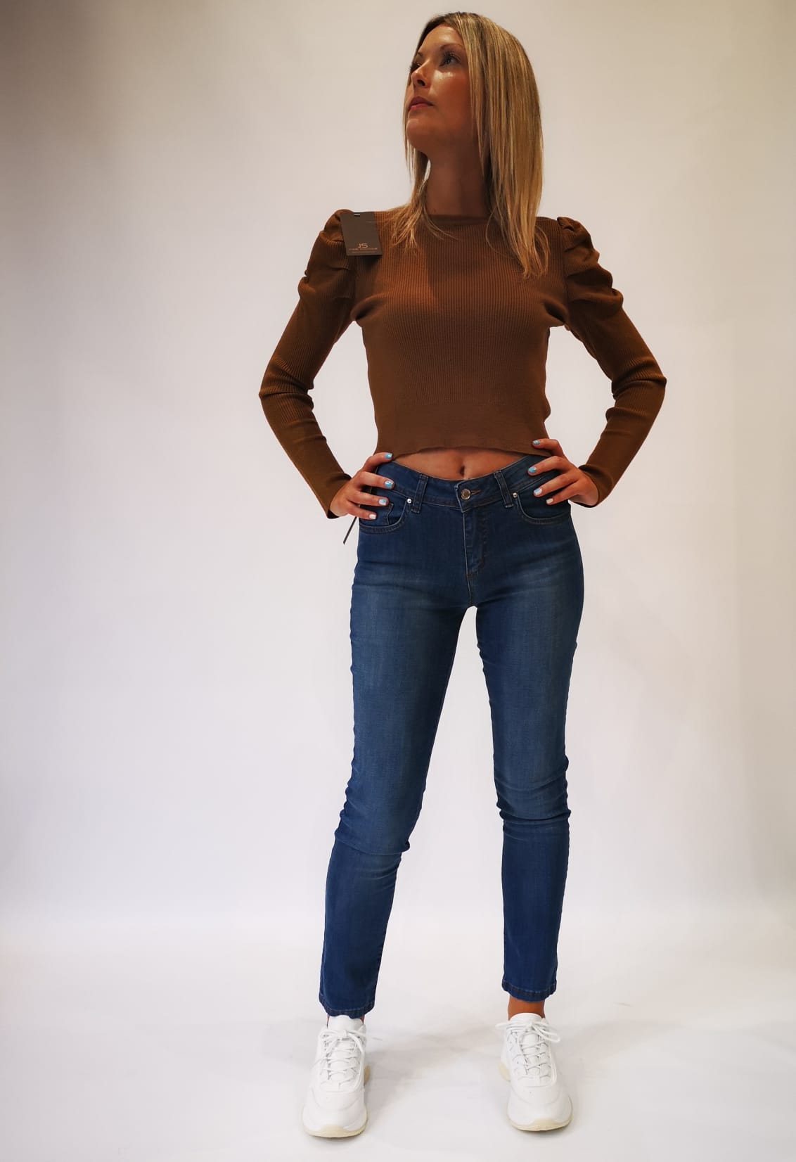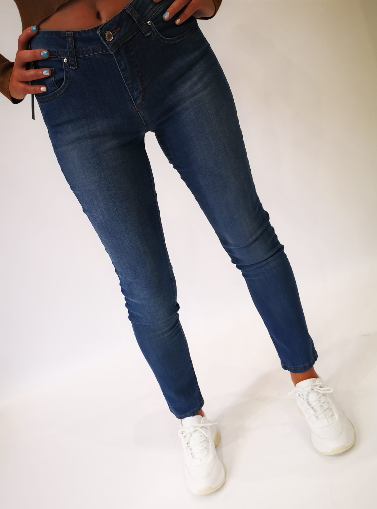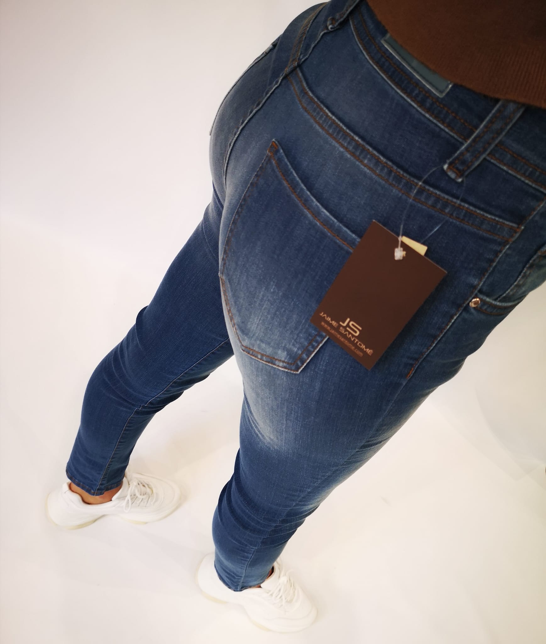 Pantalón tejano mujer en tono claro. Cierre de botonadura y cremallera. Fabricación española.