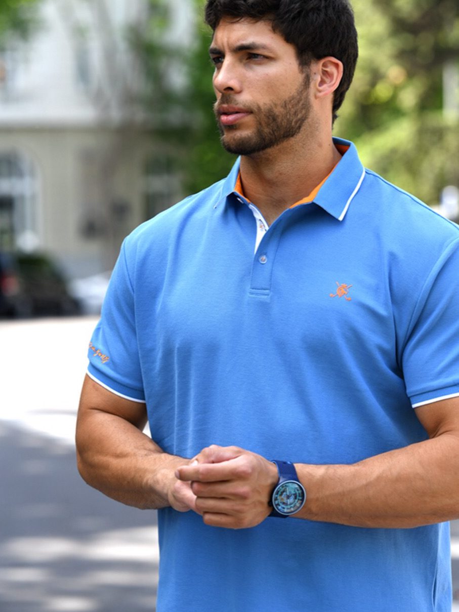 Polo de manga corta con elástico. Logo y detalles cuello en color de contraste. Cuello clásico con cierre de botonadura. Composición: 63% algodón y 37% poliéster.