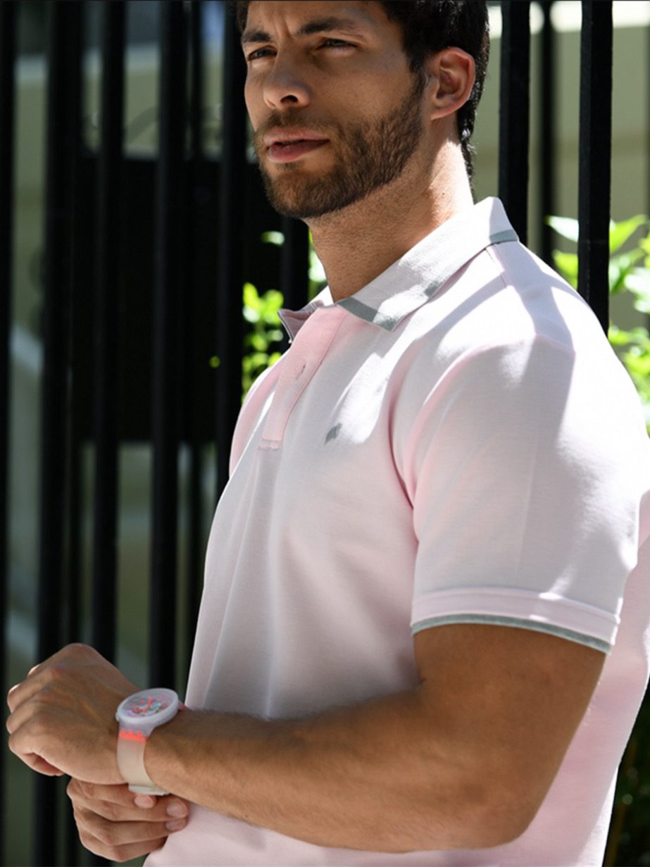 Polo de manga corta con elástico. Logo y detalles cuello en color de contraste. Cuello clásico con cierre de botonadura. Composición: 63% algodón y 37% poliéster.