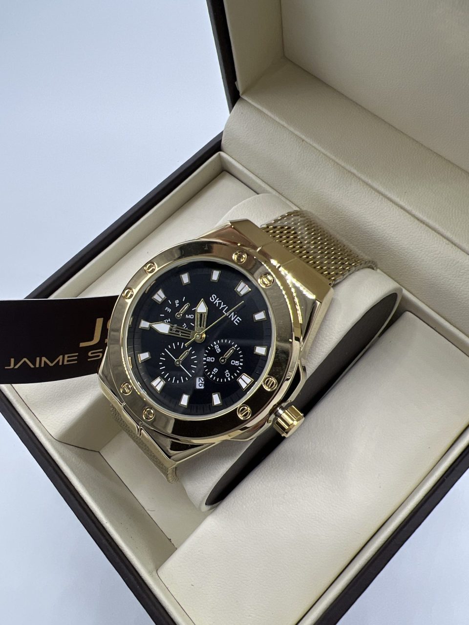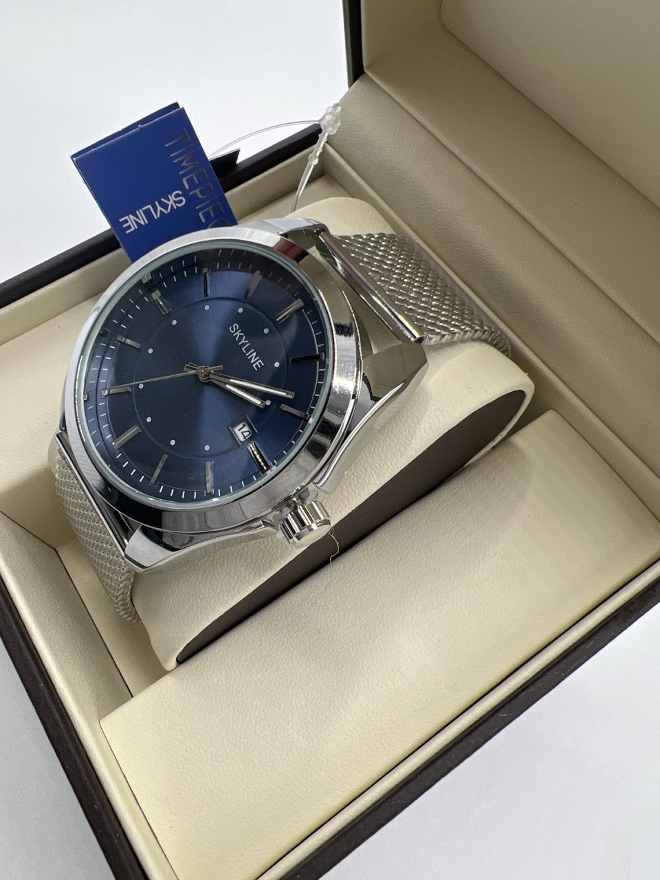 Reloj acero Skyline, esfera redonda. Movimiento cuarzo japonés. Correa de malla en acero inoxidable. Función hora y calendario. Garantía 2 años.