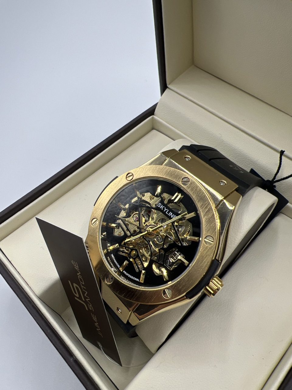 Reloj automático Skyline, con caja en acero y correa de caucho. Dial con maquinaria a la vista. Garantía de 2 años.