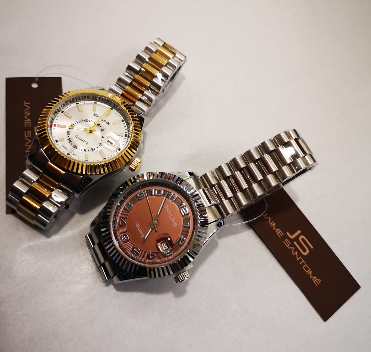 Reloj clásico de acero en color plata con esfera redonda en color marrón chocolate. Funciones: hora y calendario.