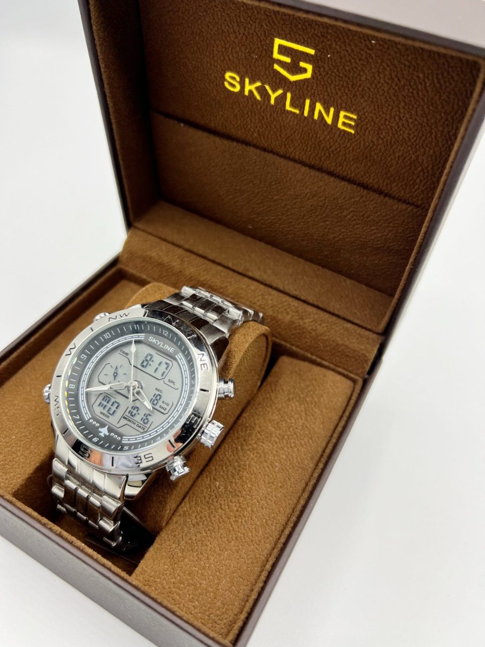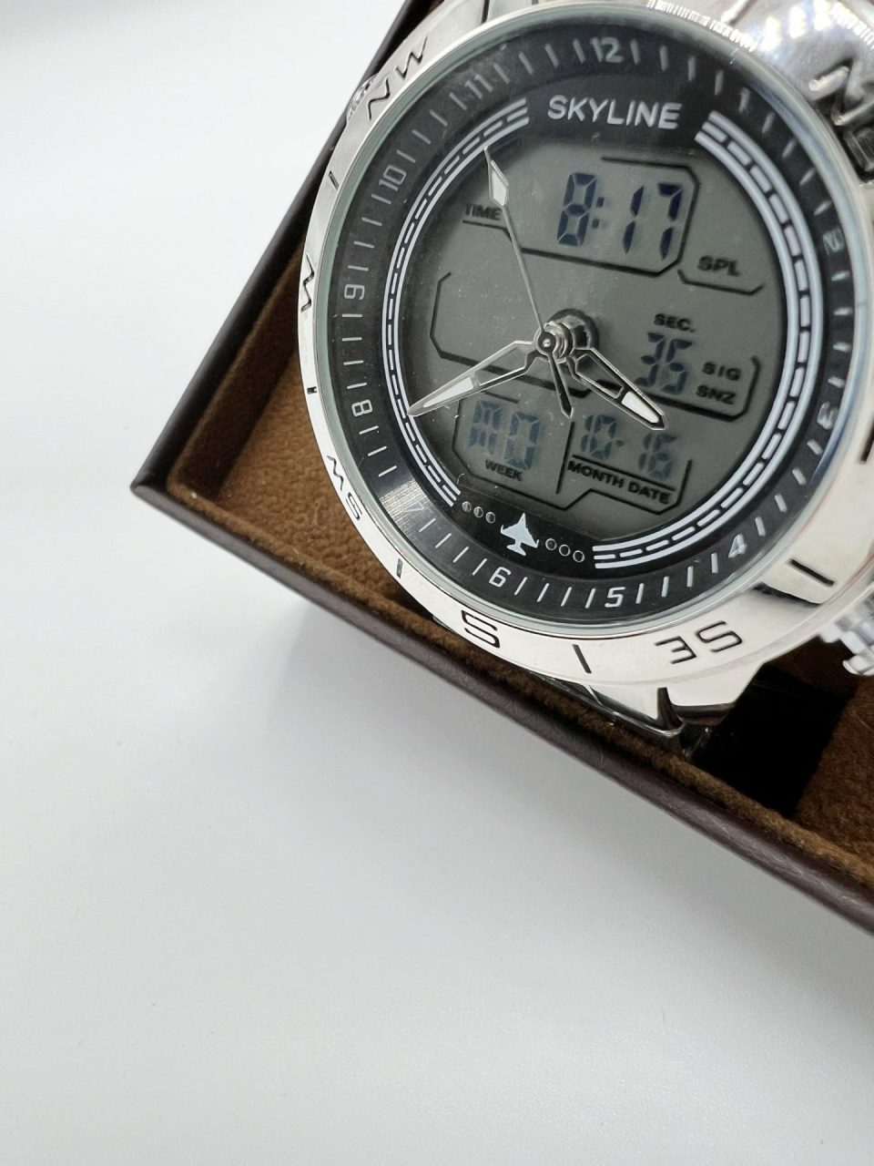 Reloj multifunción digital/analógico en acero. Impermeabilidad: 3 ATM. Movimiento de cuarzo japonés. Correa de acero. Funciones: Hora, luz, cronógrafo, alarma y calendario. Garantía de 2 años.