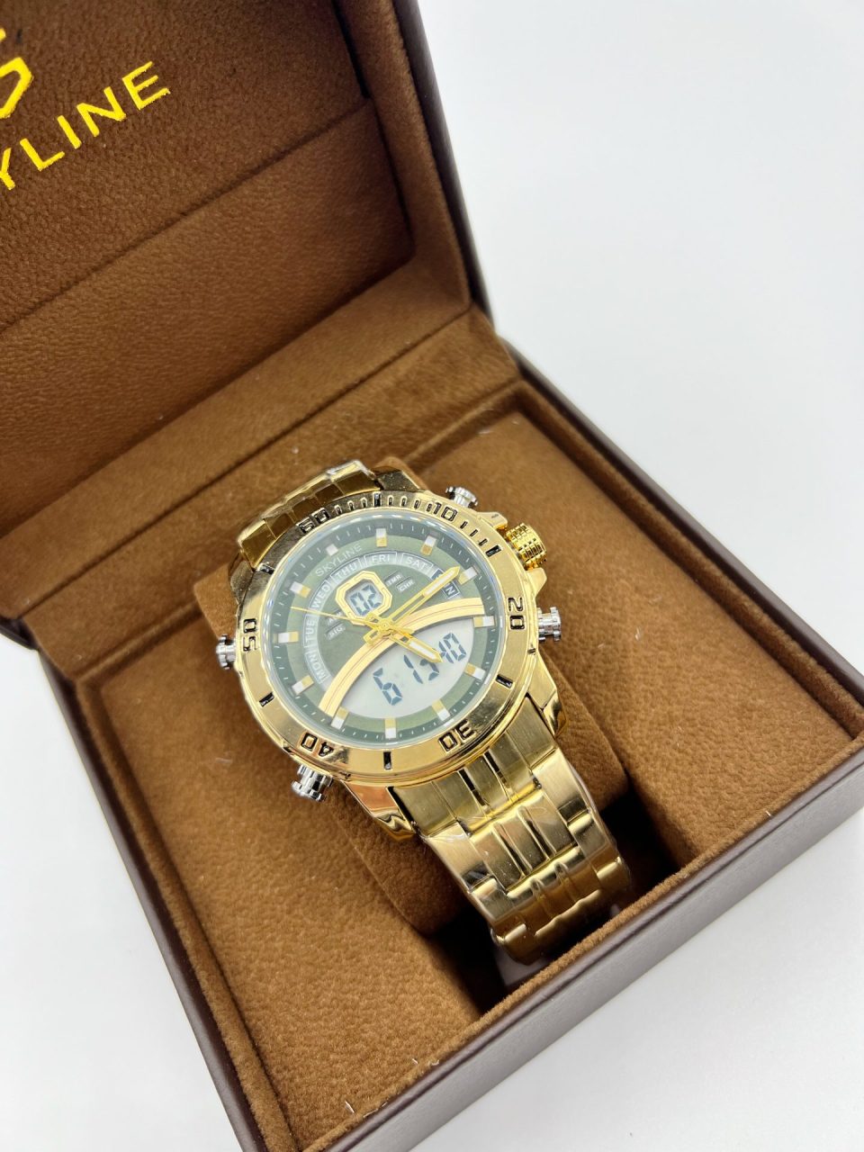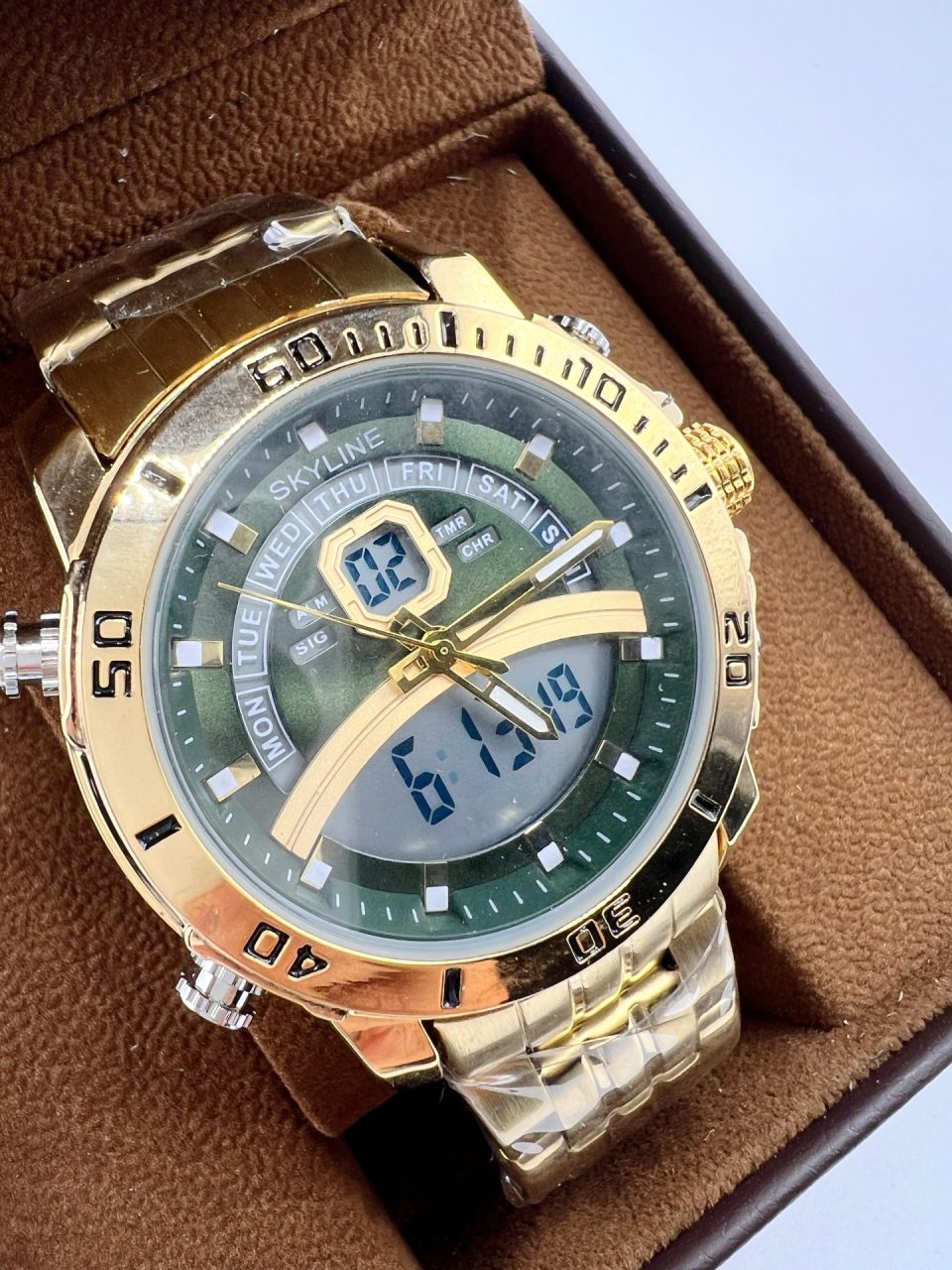 Reloj multifunción digital/analógico en acero. Impermeabilidad: 3 ATM. Movimiento de cuarzo japonés. Correa de acero. Funciones: Doble hora, luz, y calendario. Garantía de 2 años.