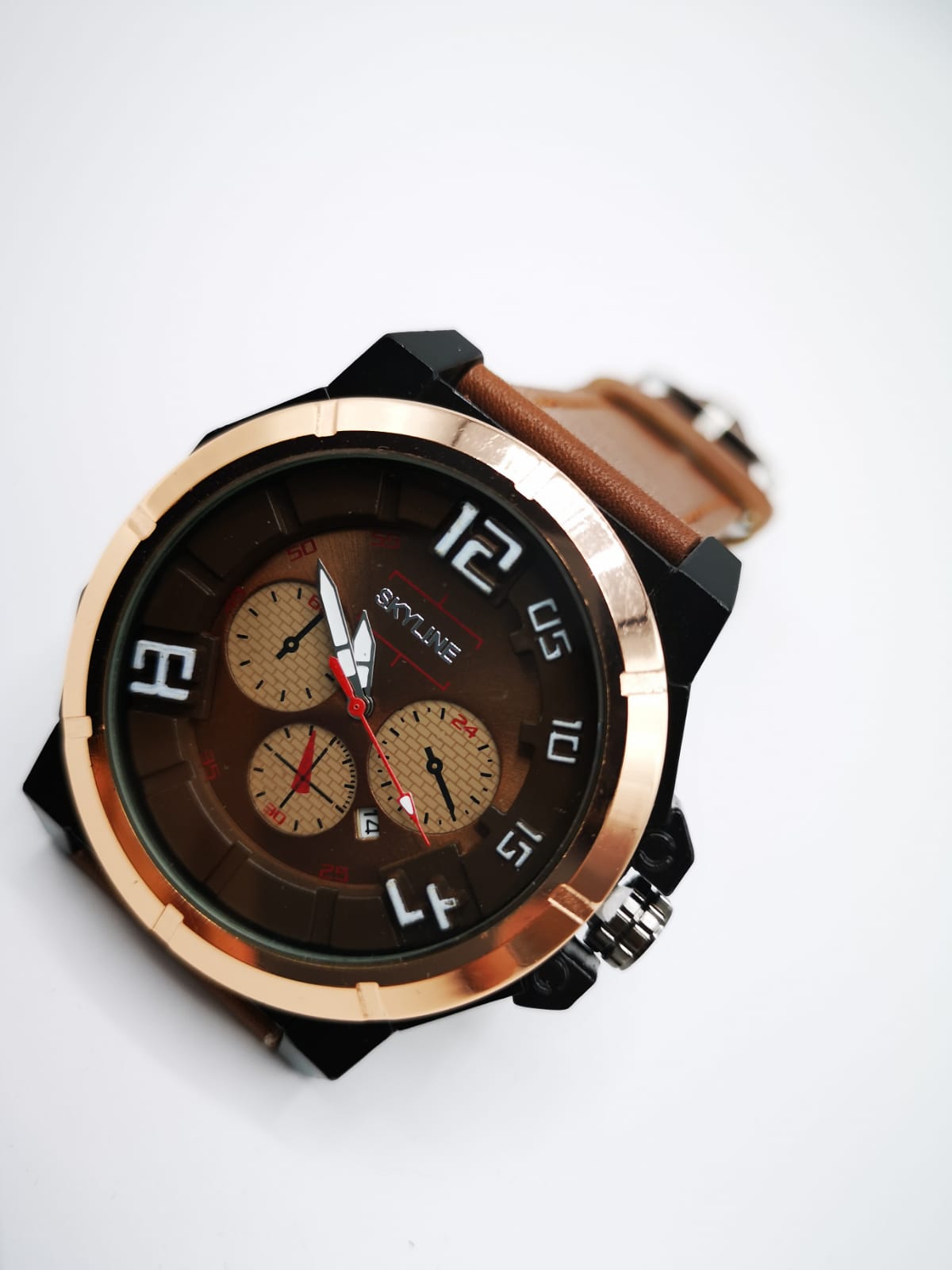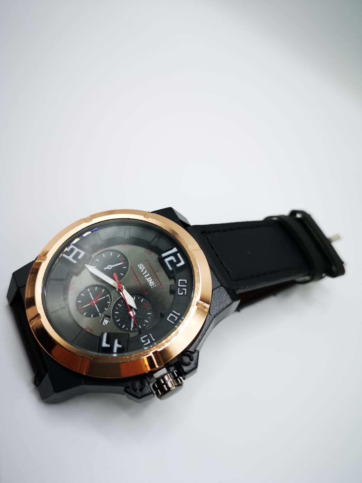 Reloj con correa en PU. Esfera redonda. Cronógrafo. Función calendario. 2 años de garantía.
