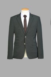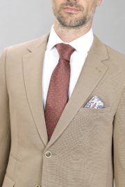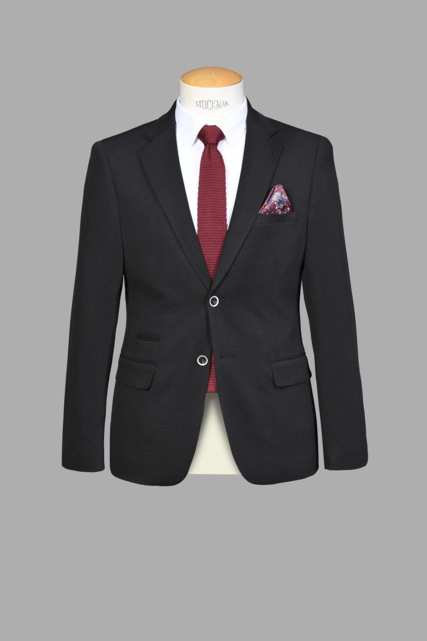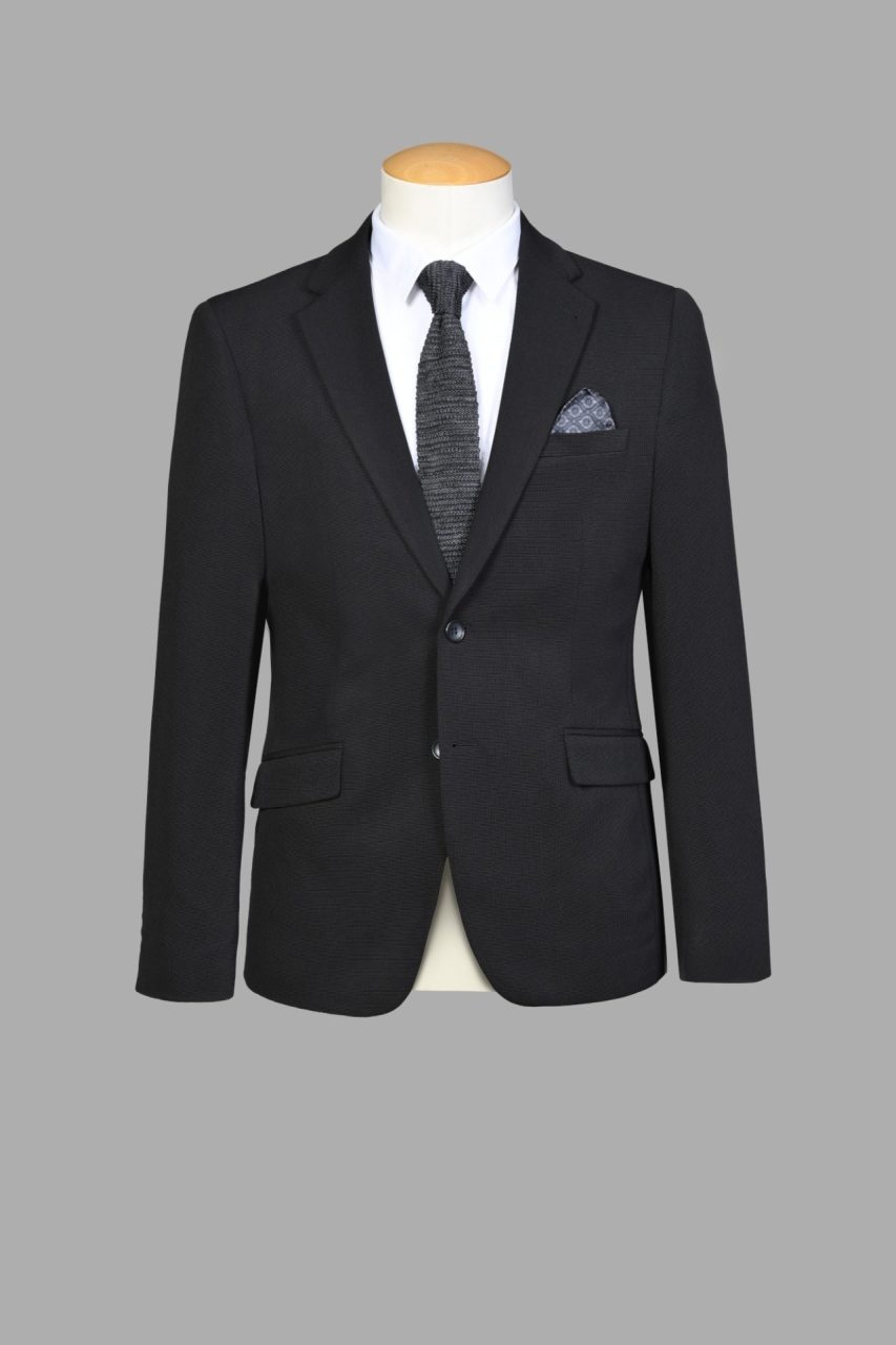 Traje Slim-Fit con tejido de punto. Solapa y bolsillos con picado. Chaqueta con relojera de vivo.