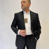 Traje linea Joven Slim en microestructura. Tejido exterior 73% poliéster y 27% viscosa. Forro azul 100% poliéster.
