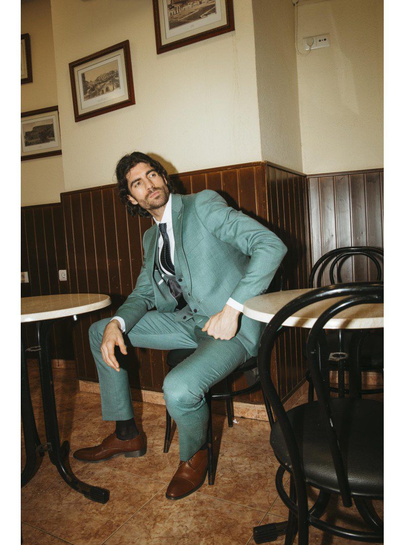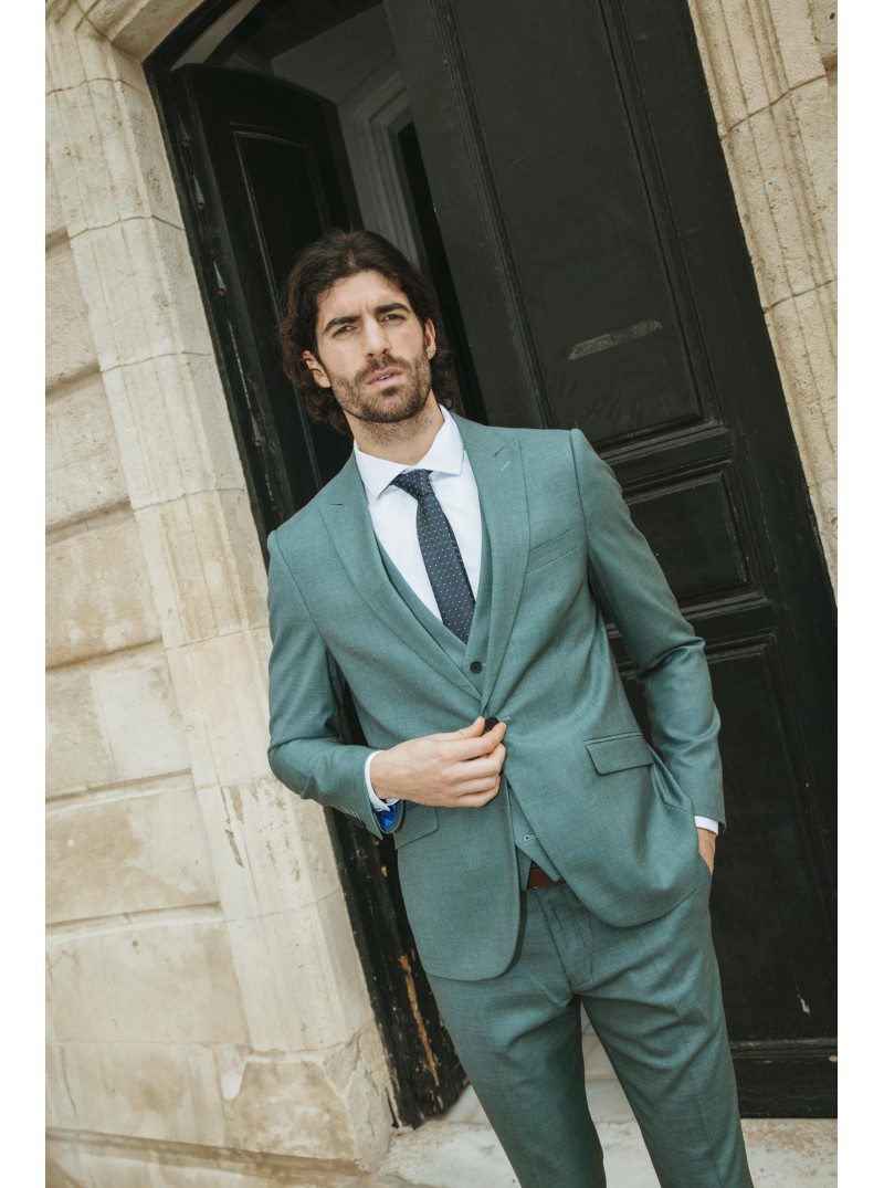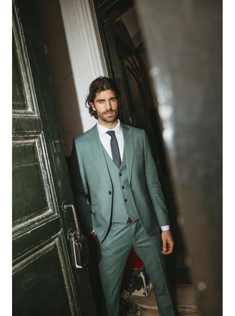 Traje tres piezas línea Joven, de corte Slim.
