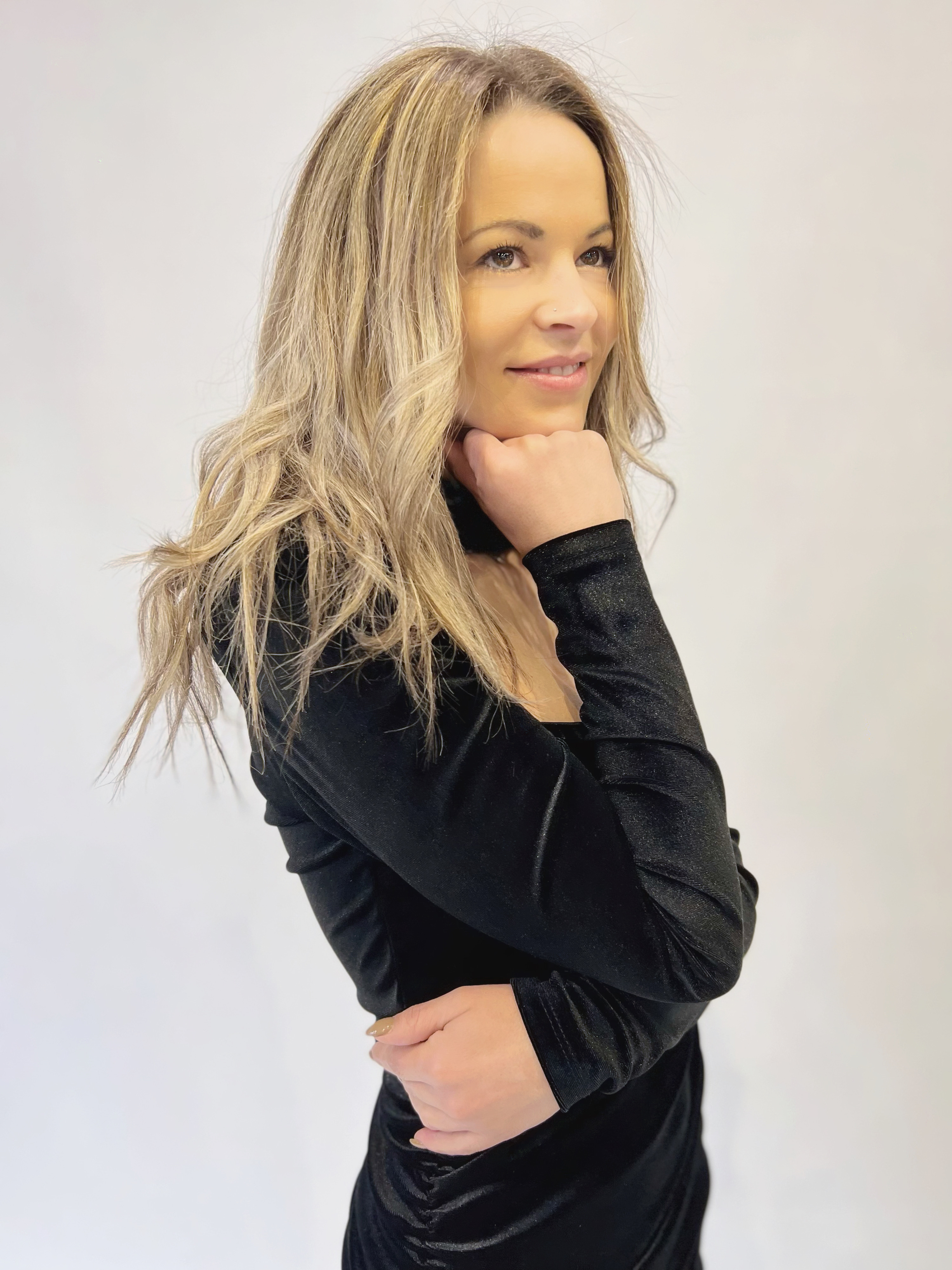 Vestido aterciopelado de cuello alto cerrado detrás con dos botones. Escote abierto cuadrado. Manga larga y falda con fruncidos laterales. Cierre trasero con cremallera. Composición: 92% poliéster y 8% elastano. Made in Italy.