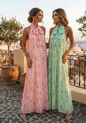 Eleva tu estilo con este sofisticado vestido de fabricación italiana. Con un favorecedor cuello halter ajustable mediante un lazo y un estampado de tendencia, es la pieza perfecta para eventos de día, cócteles o una cena especial. Su caída fluida garantiza elegancia en cada movimiento.